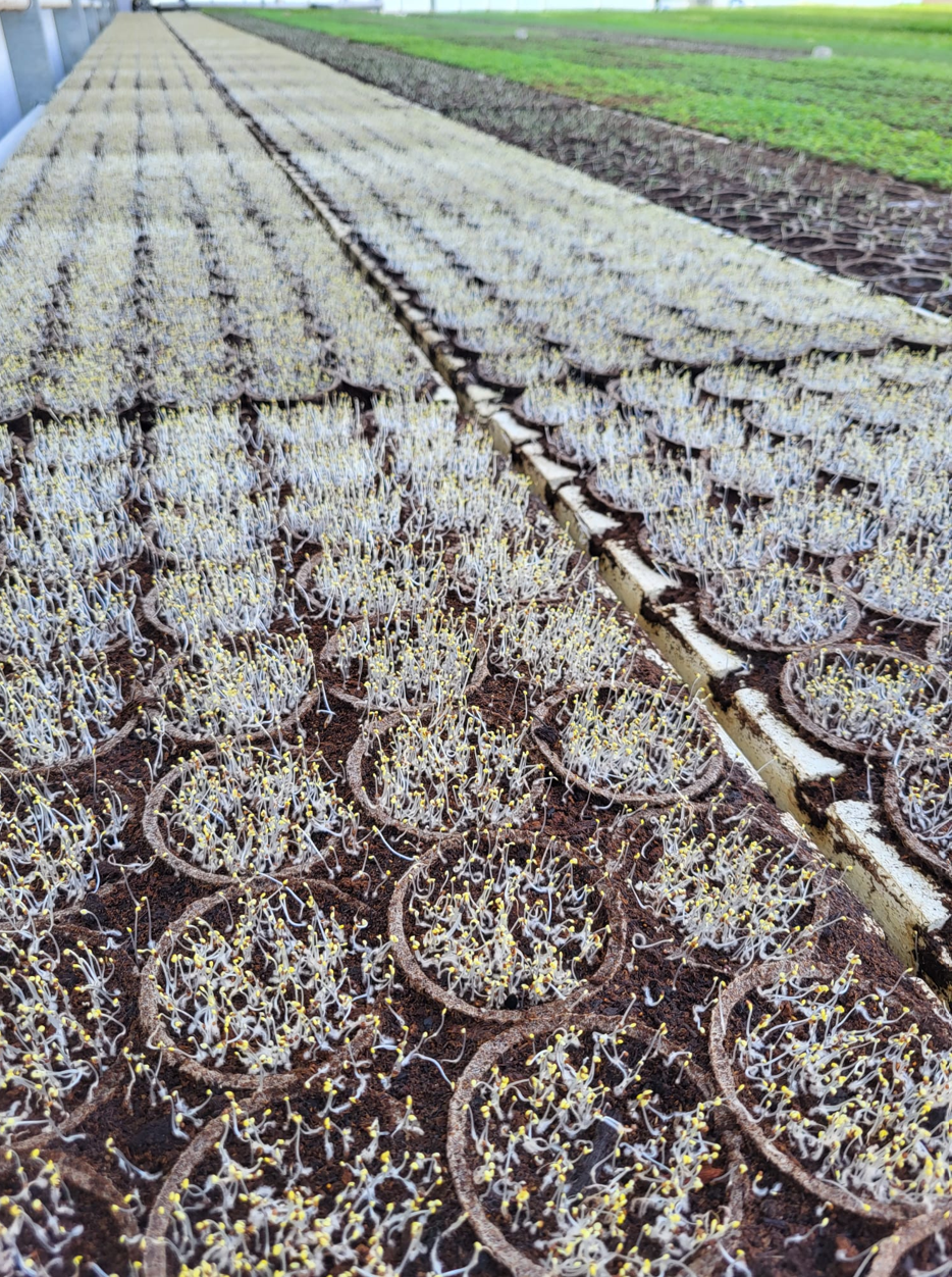 In commercial leafy greens facilities, growers generally use either naked or pelleted seeds. Naked seeds are untreated, making them more cost-effective but also more vulnerable to environmental stress and external threats. Pelleted seeds, on the other hand, are coated with a protective layer that improves handling, protects the seed during early development, and ensures more stable moisture conditions during germination. As a result, pelleted seeds typically deliver higher and more uniform germination rates. It is worth noting that pelleted seeds have a much higher purchase cost compared to naked seeds.